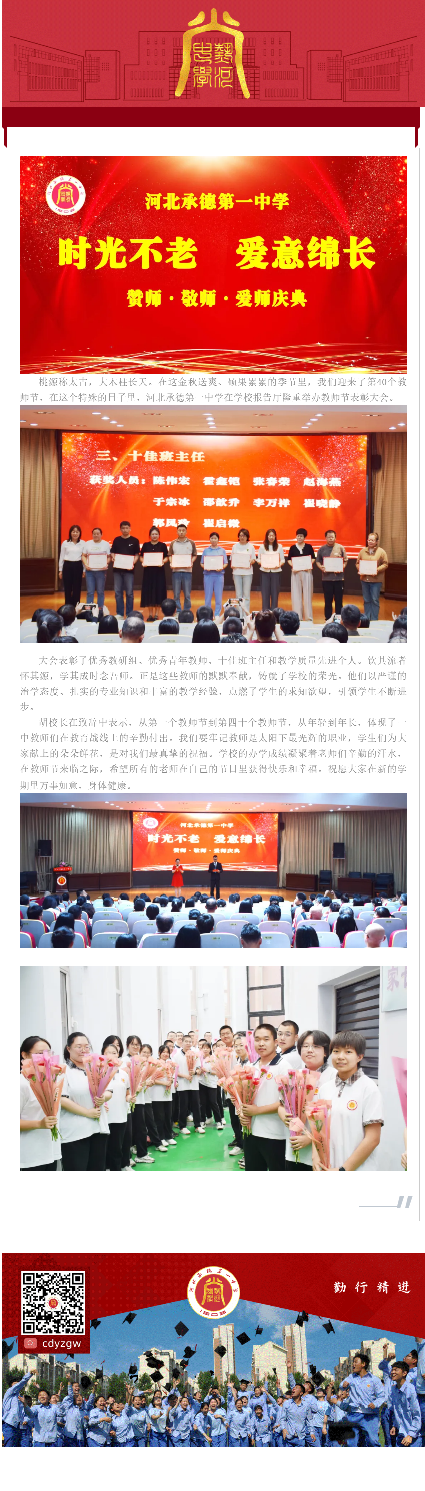 師道傳薪火 教育筑強國 河北承德第一中學舉辦教師節表彰大會