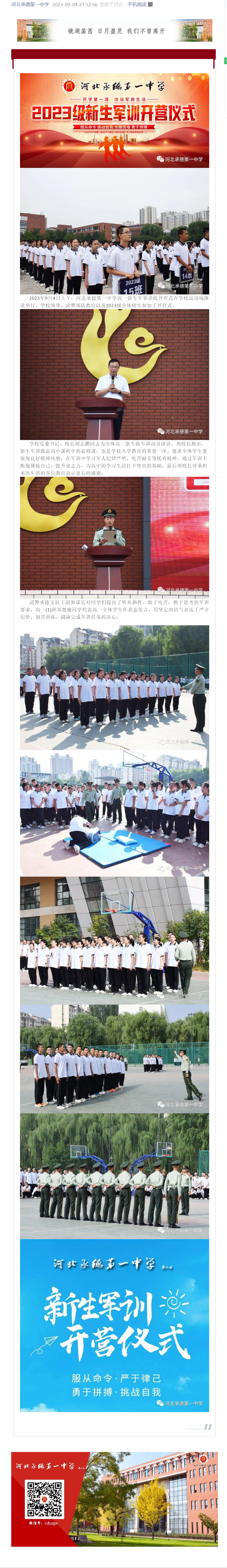 開學第一課 河北承德第一中學舉行2023級新生軍訓開營式