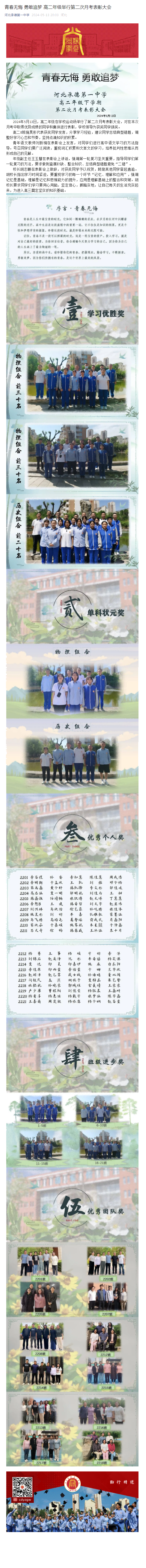 青春無悔 勇敢追夢 高二年級舉行第二次月考表彰大會
