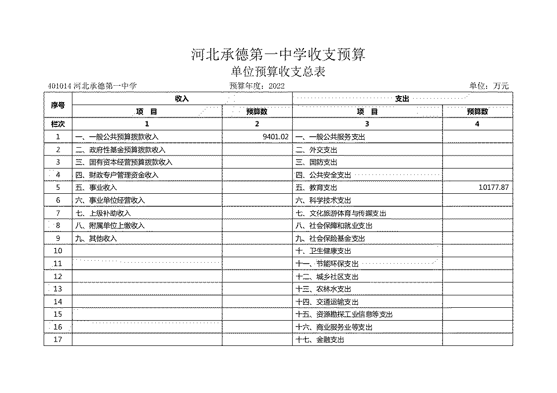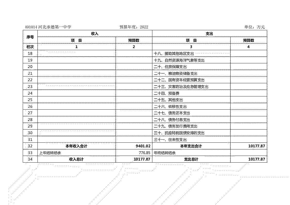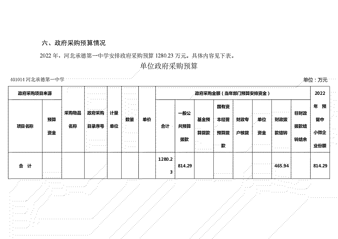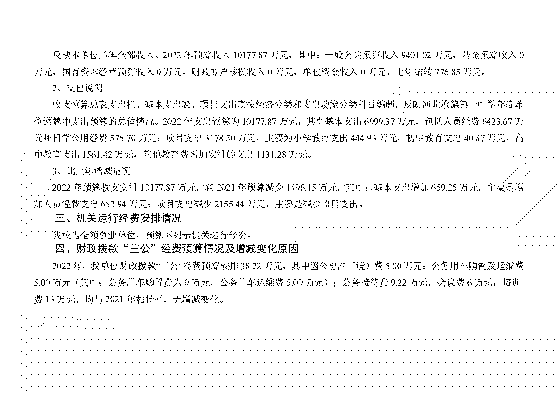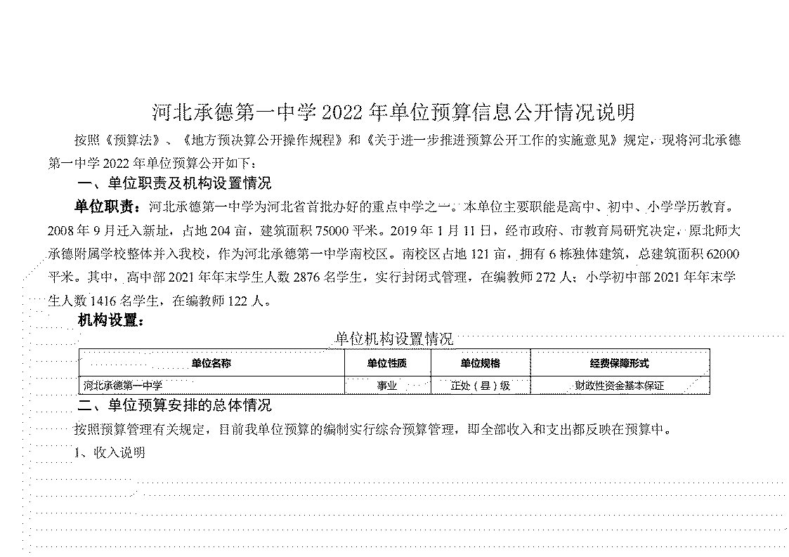 2022年河北承德第一中學(xué)學(xué)校預(yù)算公開文本及預(yù)算績效文本
