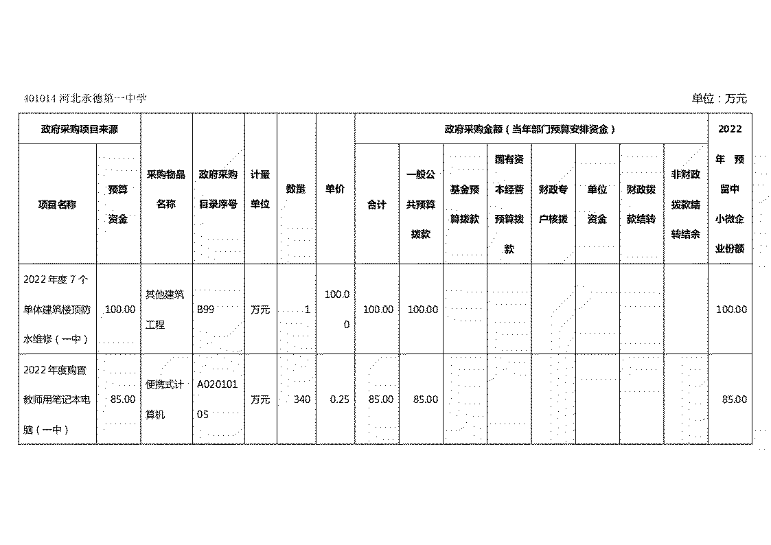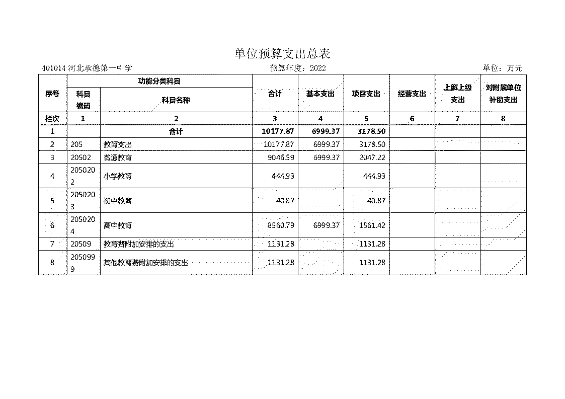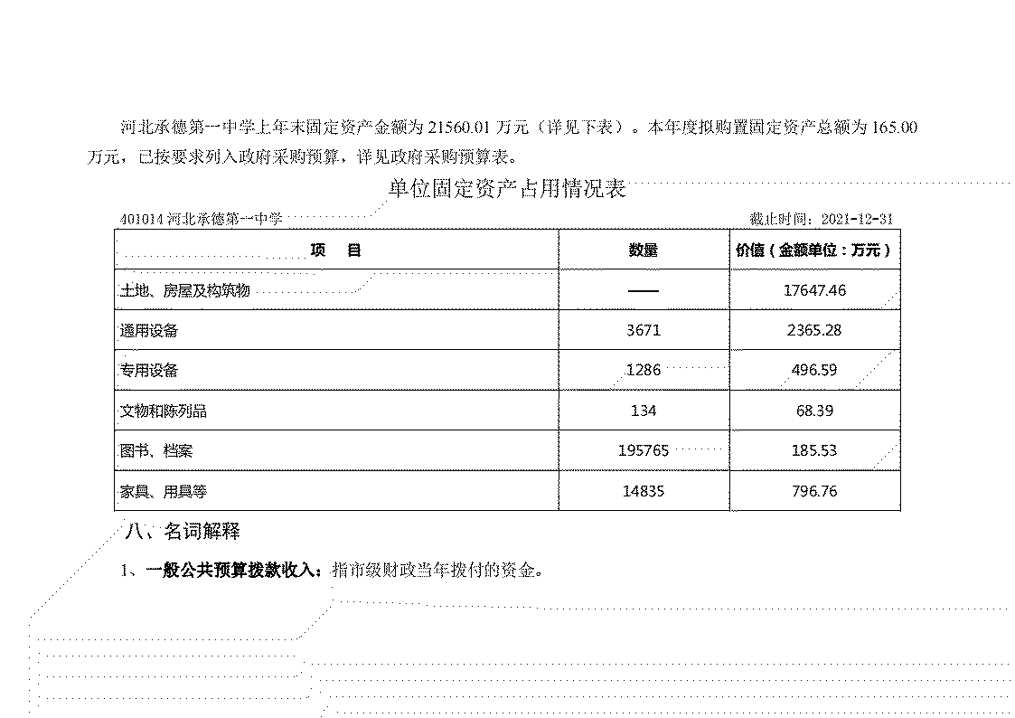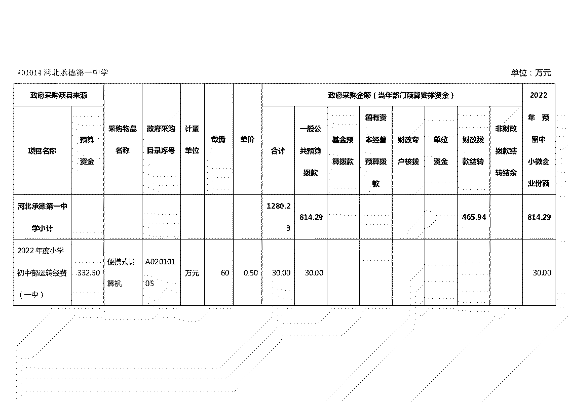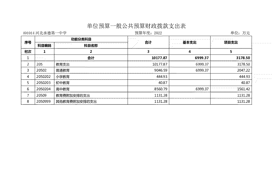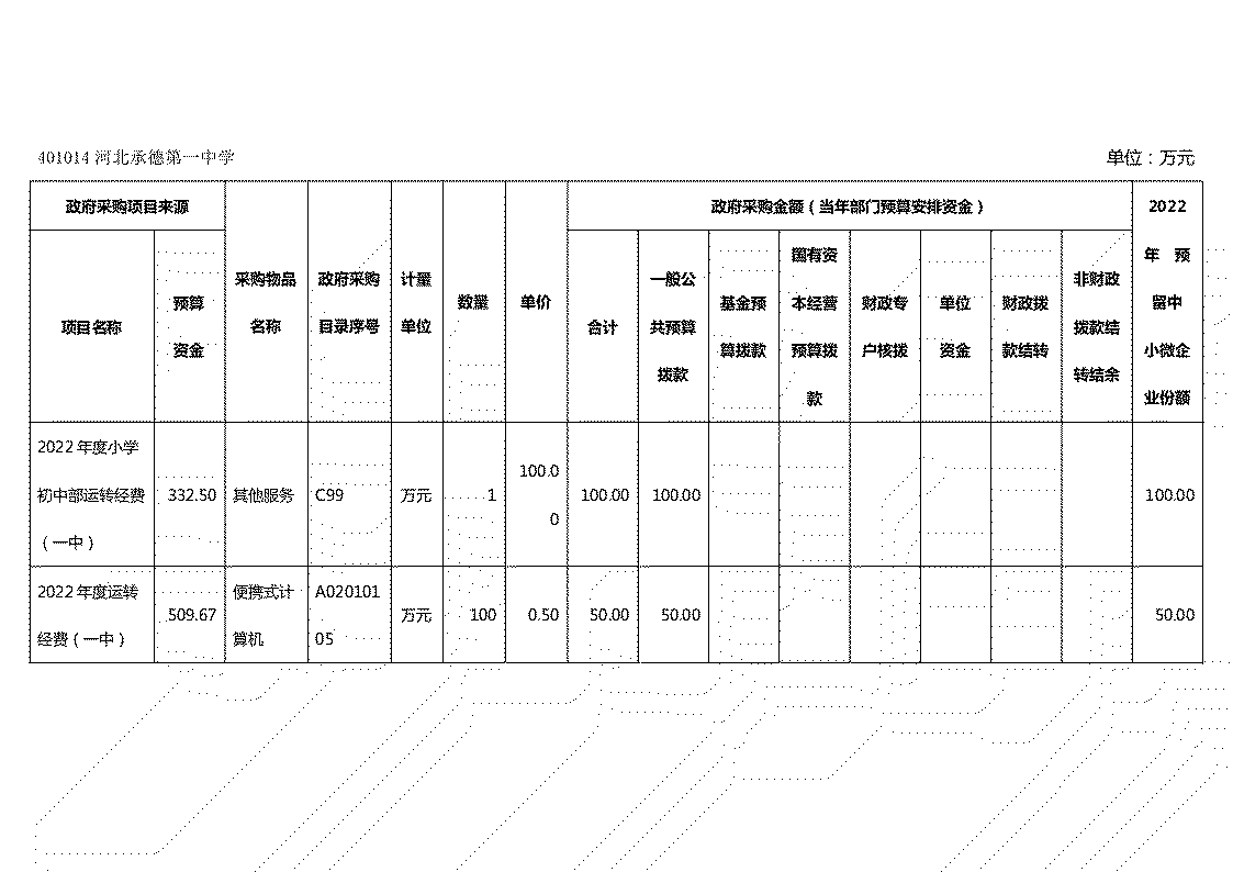 2022年河北承德第一中學(xué)學(xué)校預(yù)算公開文本及預(yù)算績效文本