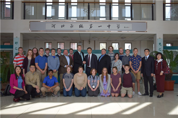 2018年4月12日下午,由教育學(xué)監(jiān)賈斯汀.魏格納先生率領(lǐng)的美國愛荷華州哈倫學(xué)區(qū)社區(qū)學(xué)校訪問團(tuán)到訪我校,受到學(xué)校領(lǐng)導(dǎo)和我校師生代表的熱烈歡迎。