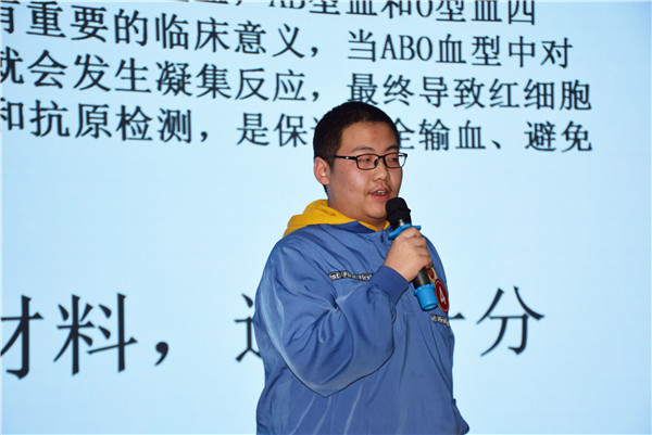 此輪兩隊選手進行血型鑒定實驗,臺下觀眾共同參與到實驗當中,充分體會到了生物這門學科的樂趣與神奇。