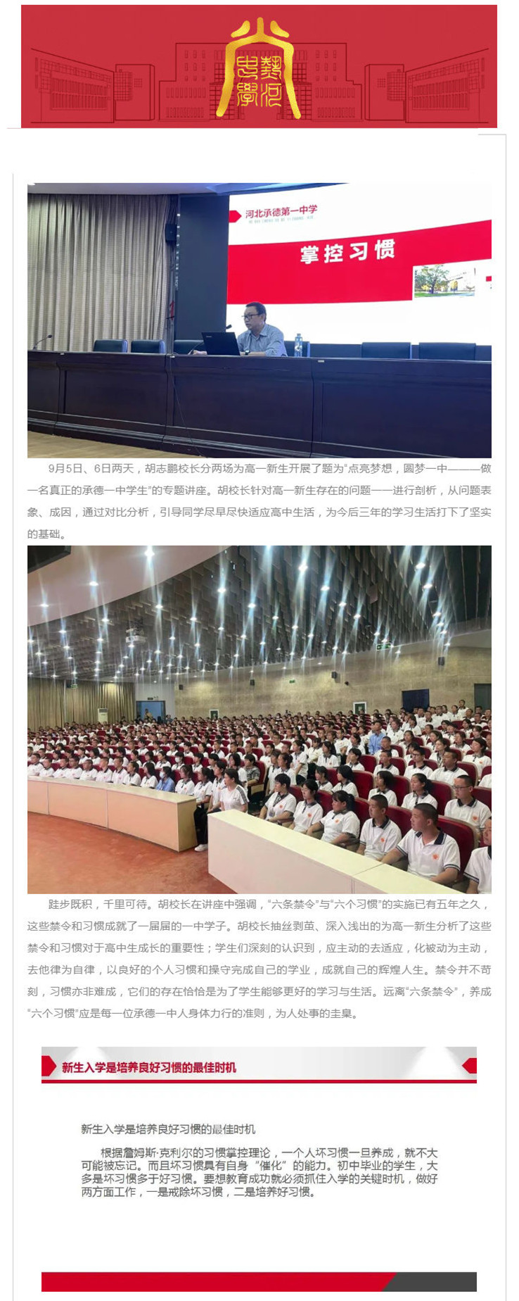 胡志鵬校長為高一新生做“點亮夢想,圓夢一中 ”專題講座