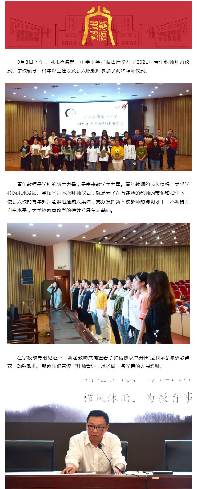 河北承德第一中學(xué)舉行青年教師拜師儀式