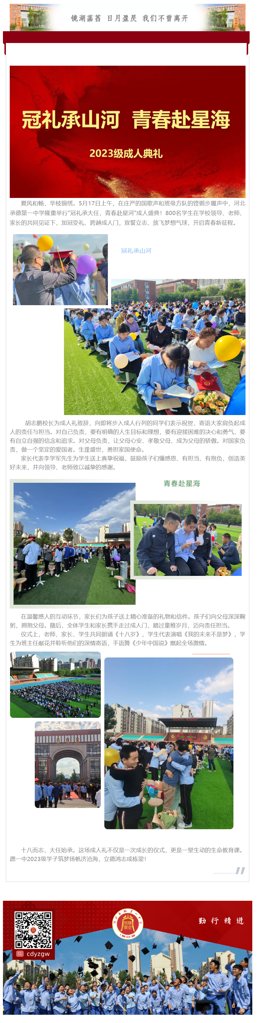冠禮承山河 青春赴星海 河北承德第一中學隆重舉行2023級成人禮